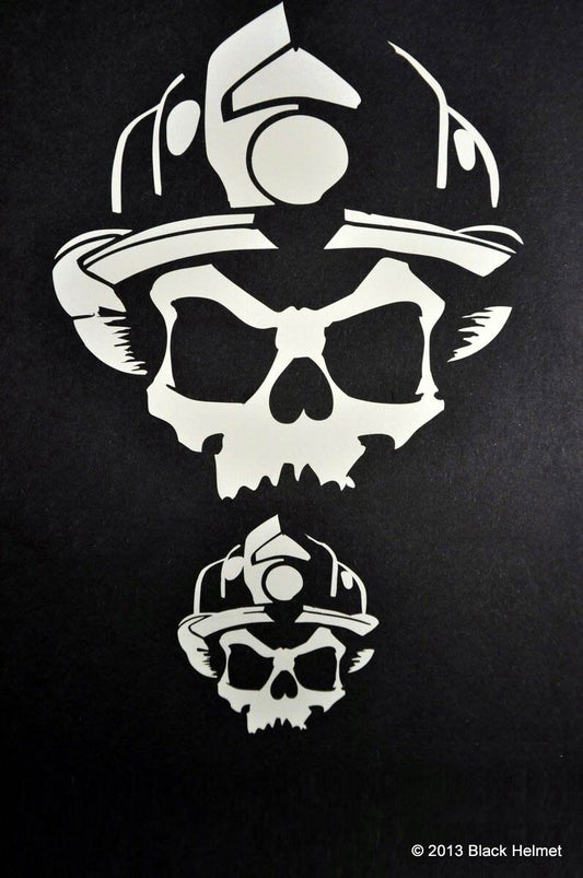 Black Helmet " Skull Logo" Two Vinyle White Transfer Decals- Helmet and Truck Decal in 1 Pack