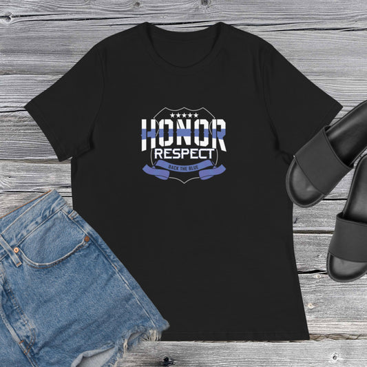 Honor And Respect Back The Blue Women's Relaxed Bella CanvasT-Shirt
