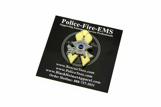 Thin Blue Line Law Enforcement Support Childhood Cancer Gold Ribbon 5 Point Star Lapel PinRegular price $9.95 USDRegular priceUnit price / per-