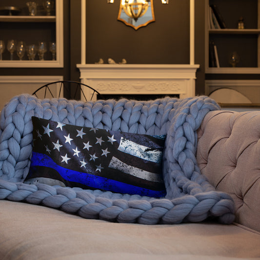 Thin Blue Line USA Wavy Flag Premium Pillow