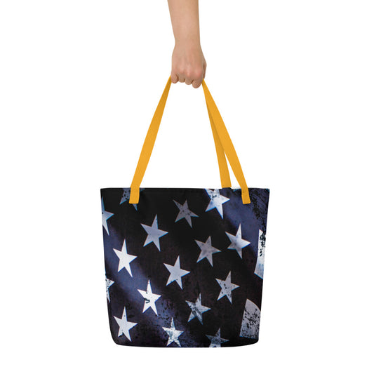 Thin Blue Line USA Wavy Flag Back The Blue All-Over Print Large Tote Bag