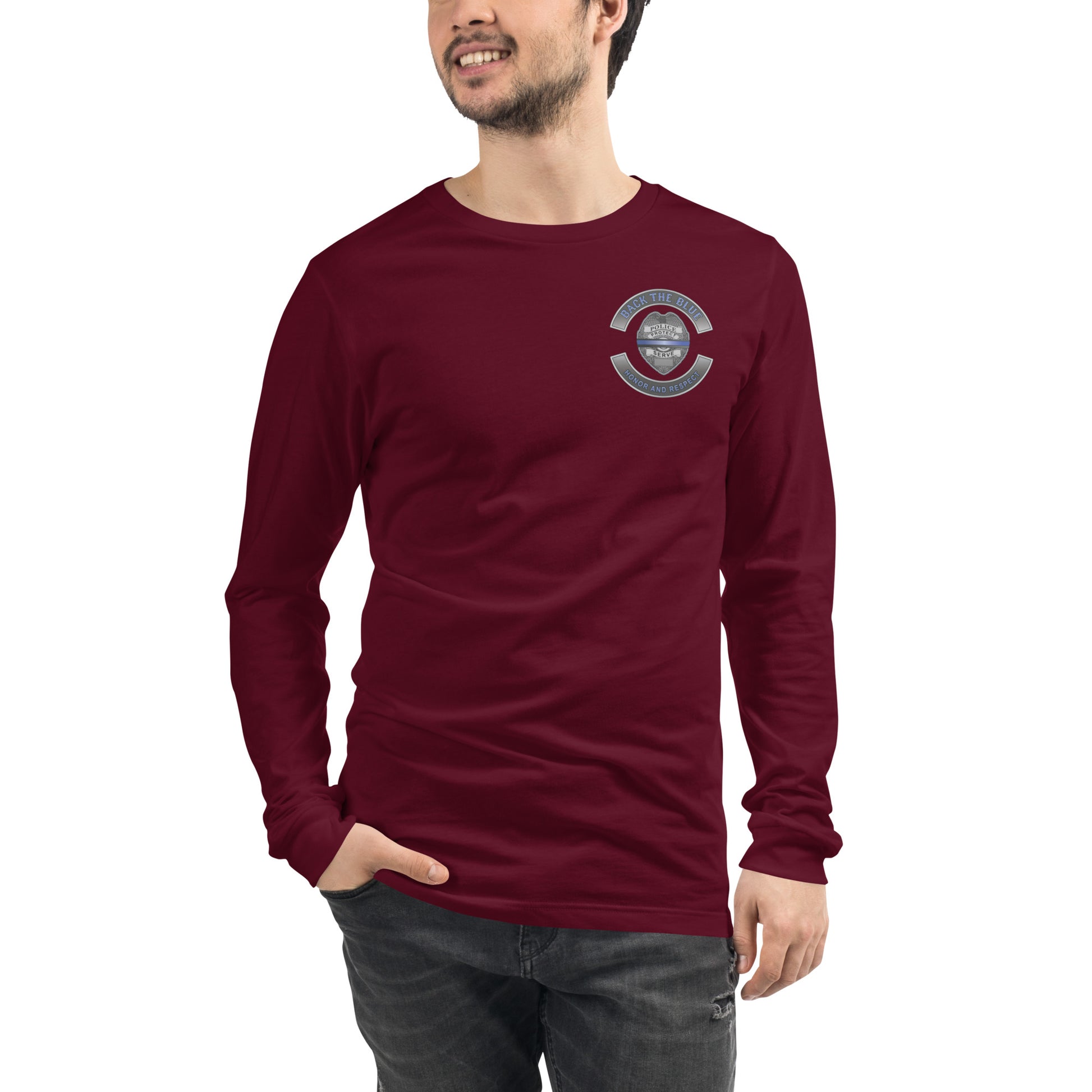 Back The Blue Honor and Respect Thin Blue Line Bella Canvas Long Sleeve Tee