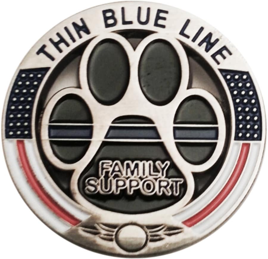 Pin measures 1.25 tall. Jeweler's grade hard fired enamel in antique silver finish. This pin features a Thin Blue Line K9 Paw and is a Family Support Pin. This pin can be worn or carried in your purse or wallet to show support.