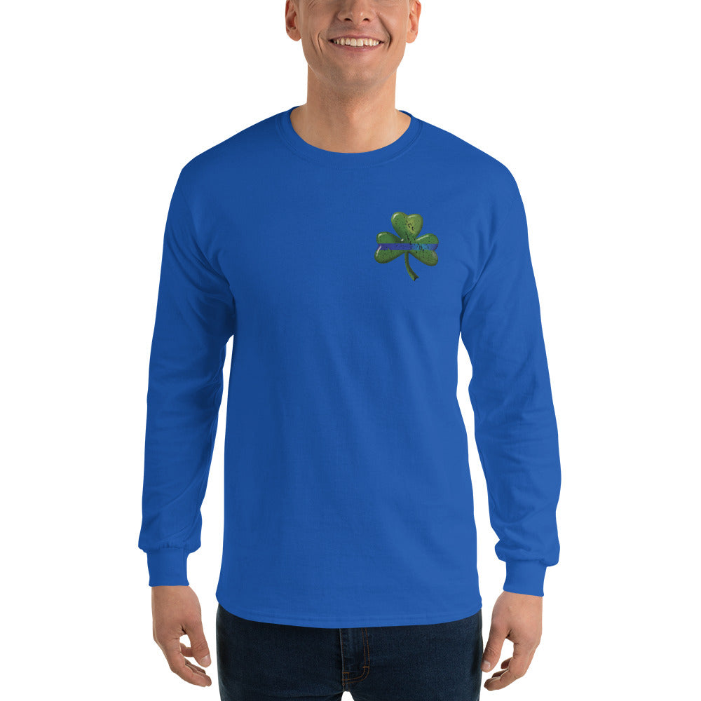 Thin Blue Line Shamrock Irish Long Sleeve Gildan T Shirt
