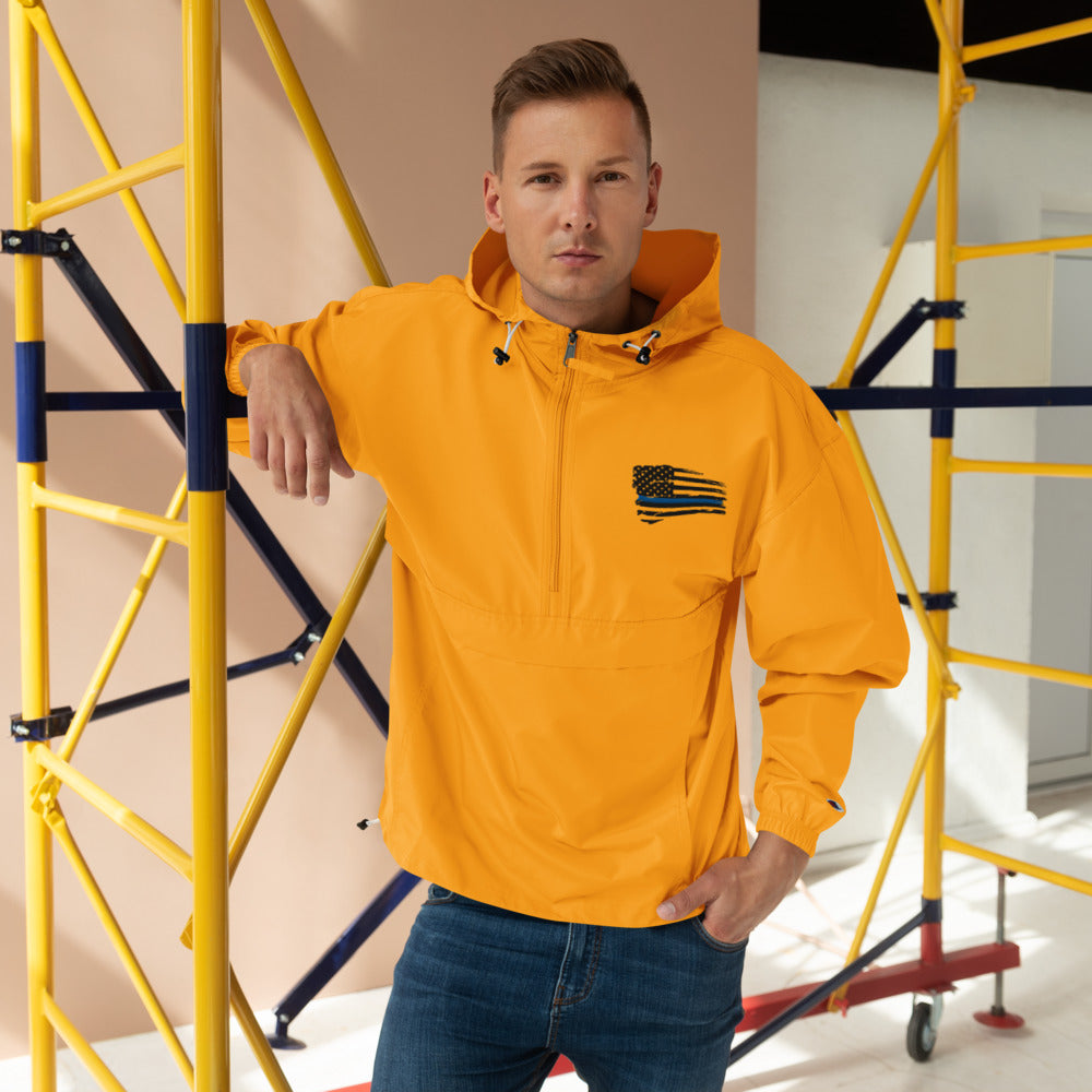 Thin Blue Line USA Tethered Flag Embroidered Champion Packable Jacket
